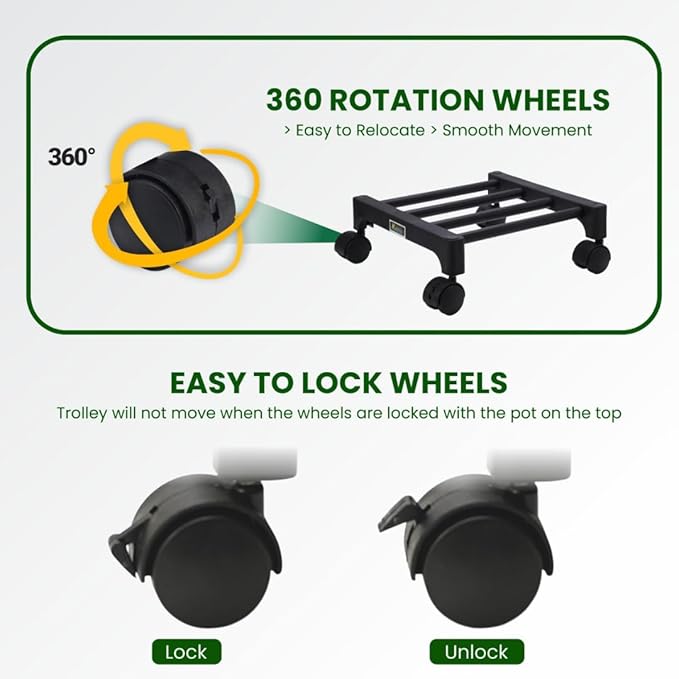 - Convenient Mobility with Wheels – Designed with 2 lock wheels for stability and 2 free wheels for easy movement, allowing you to shift heavy plant pots effortlessly indoors or outdoors.